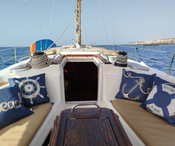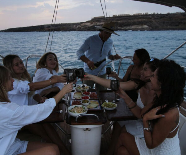Set sail on the beautiful Bavaria 49 sailing boat for an unforgettable 3-hour private charter from Puerto Colón! Your expert captain navigates Tenerife’s stunning Costa Adeje coastline while you watch pilot whales and playful dolphins up close. Swim and snorkel in crystal-clear turquoise waters, try paddleboarding, and relax with unlimited drinks, delicious tapas, and your favorite music onboard. This clean, well-maintained yacht offers personalized service where every detail caters to your comfort. Perfect for families, friends, or romantic getaways – create magical memories on the Atlantic!