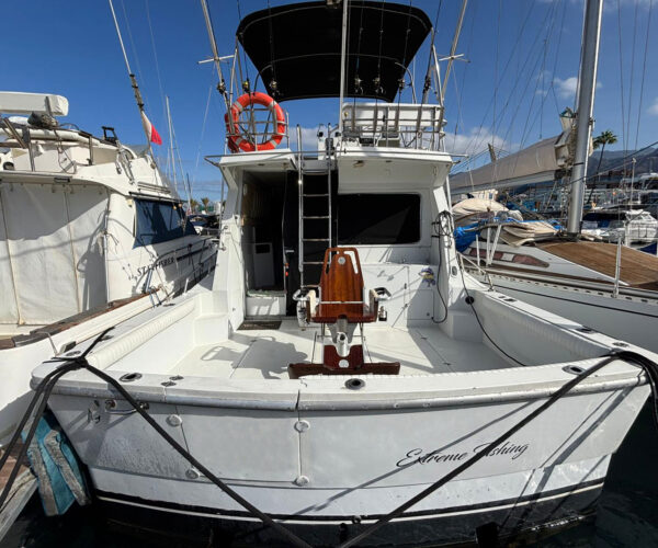 - Restored 34-foot performance boat with fighting chair and modern fishfinder