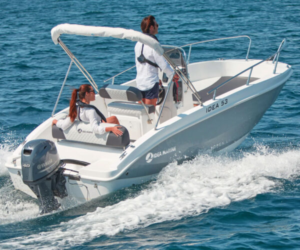- Easy-to-handle 5-meter Italian motorboat with 15 HP engine