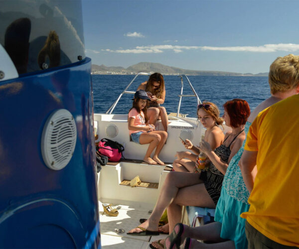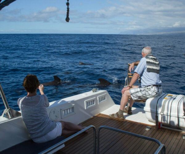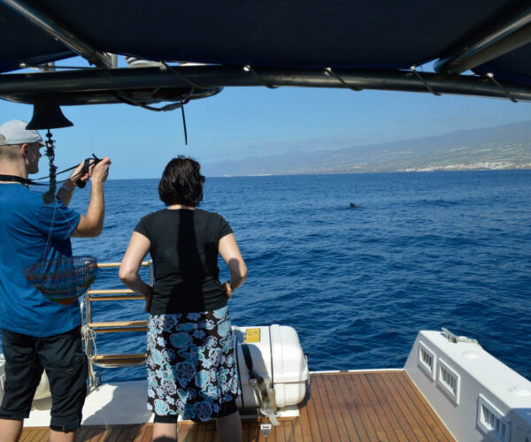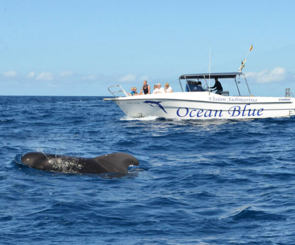 Experience the Atlantic’s incredible marine life aboard Ocean Blue on an exclusive 3-hour private charter from Puerto Colón! Your specialized cetacean guide and skilled captain navigate while you watch dolphins, sperm whales, and pilot whales up close. Explore underwater wonders through unique glass-bottom viewing. Anchor at El Puertito or Playa de las Vistas for a refreshing swim break. Enjoy complimentary beverages and tasty sandwich onboard. Up to 11 guests. Total privacy, multilingual crew (English, French, Spanish, Italian, Dutch), wheelchair accessible. All-inclusive: crew, fuel, taxes!
