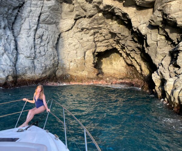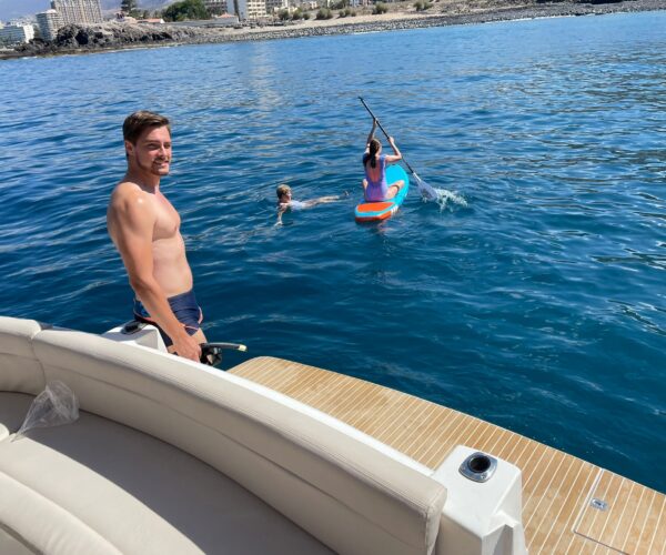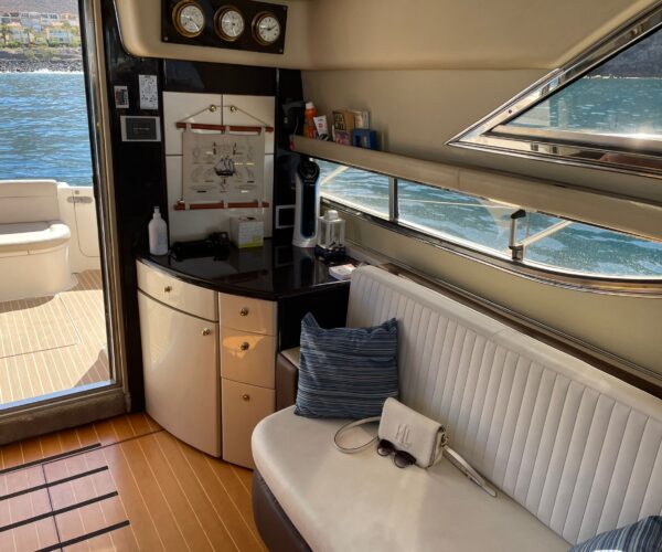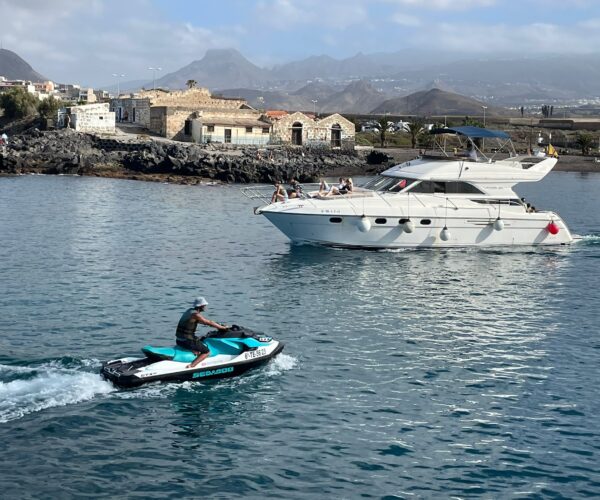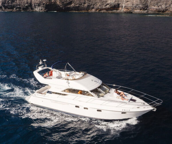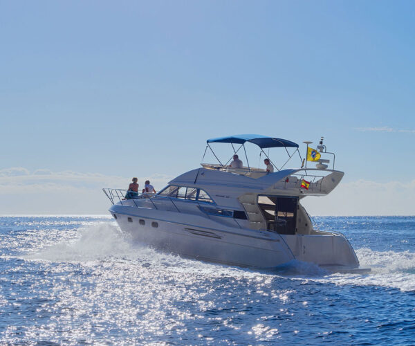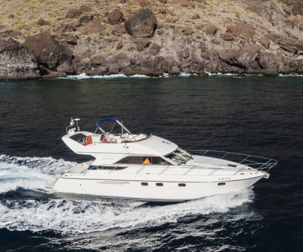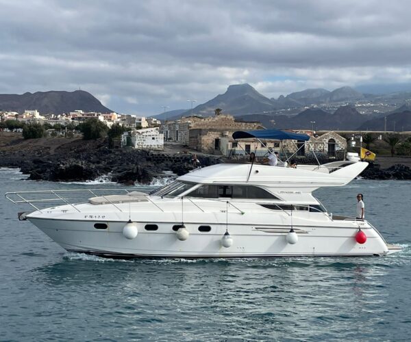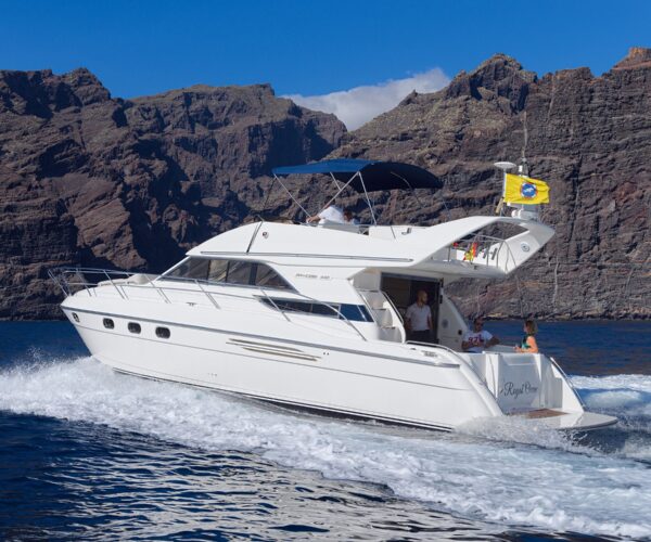 Discover Tenerife’s spectacular south coast aboard the luxurious Princess 440 motor yacht from Las Galletas marina! Your professional crew of two navigate while you watch whales and dolphins, cruise the stunning coastline with mountain views, and explore sea caves. Stop at a pristine bay for snorkeling and swimming while the onboard chef prepares a delicious lunch. Enjoy unlimited drinks, comfortable spacious deck, all facilities, towels, and optional hotel pickup. Perfect for special celebrations!
