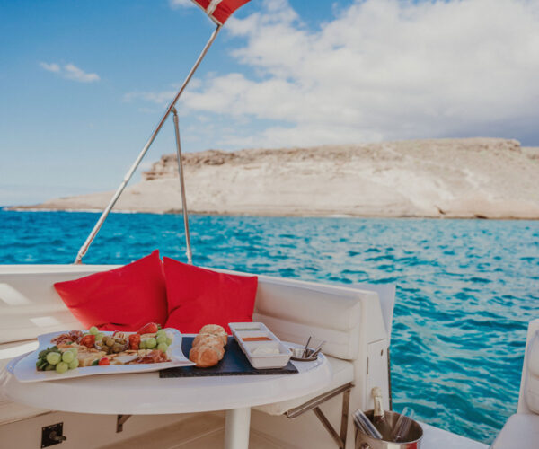 Experience Tenerife’s coastline like never before on your own private boat charter! Departing from Puerto Colón, this exclusive 3-hour adventure starts with chilled sparkling wine as you cruise the Atlantic searching for bottlenose dolphins and sea turtles. Sail to a secluded natural bay for swimming and snorkeling in crystal-clear waters surrounded by volcanic landscapes. Enjoy branded drinks throughout, plus a delicious cold meat and cheese platter with local delicacies. Professional snorkeling equipment included. Your private group only – perfect for couples, families, or friends!