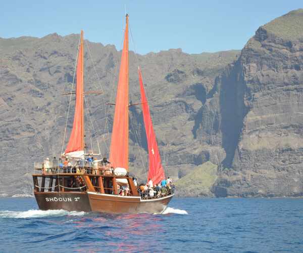 Step aboard the Shogun, a stunning traditional Arabian-style wooden schooner, for an unforgettable 5-hour family adventure from Puerto Colón! Cruise Tenerife’s southwest coast to spot pilot whales and playful dolphins in their natural habitat. Sail beneath the dramatic 600-meter Los Gigantes cliffs before anchoring in beautiful Masca Bay for swimming. Enjoy a delicious buffet lunch with vegetable rice, meatballs, salad, and fresh bread. Unlimited soft drinks flow throughout, plus wine and beer during lunch. Optional hotel pickup available!